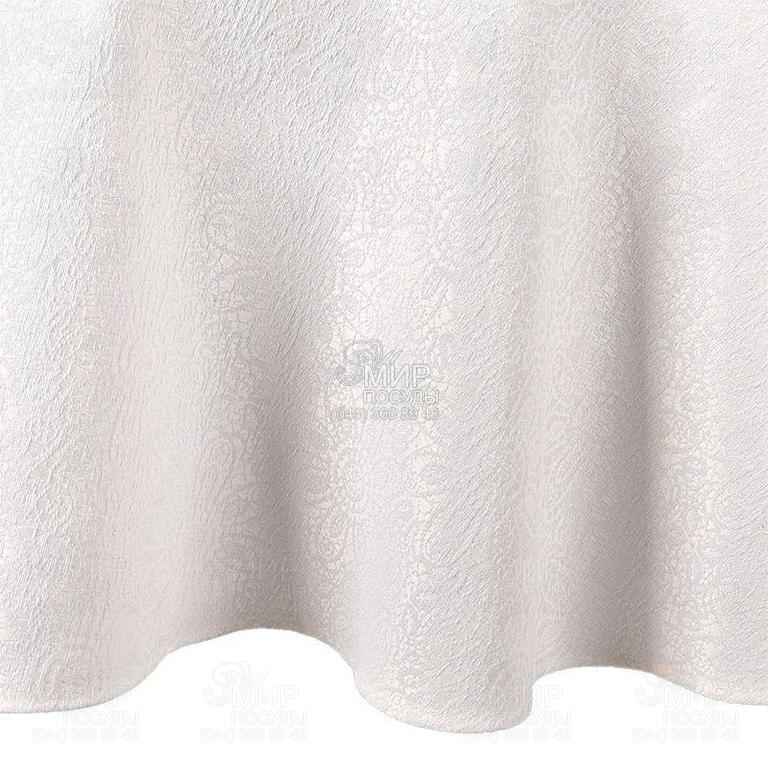Скатертина і для урочистостей, і для сімейного чаювання. У дизайні поєднуються атласне тло вершкового відтінку та ажурні візерунки, виткані матовими білими нитками. Виглядає це так, ніби поверх основного текстилю накинули найтонше мереживо. Щільна тканина красиво драпірується, спадаючи з краю столу. Тефлонова просочення абсолютно непомітна зовні і на дотик, але завдяки їй будь-яка розлита рідина не залишає на текстилі слідів - вона збирається в краплі, які можна насухо промокнути серветкою. Круглі моделі ми пропонуємо у чотирьох розмірах.