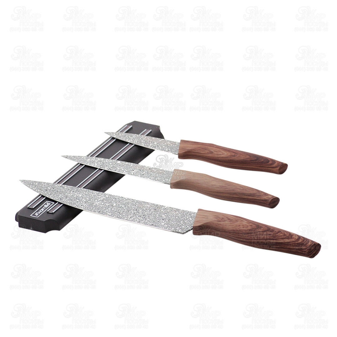 Набір кухонних ножів створений за найсучаснішими та модними технологіями та тенденціями. Він викликає захоплення навіть у найвибагливішого покупця. Набір кухонних ножів стане прикрасою на Вашій кухні та додасть неповторності Вашому інтер'єру.