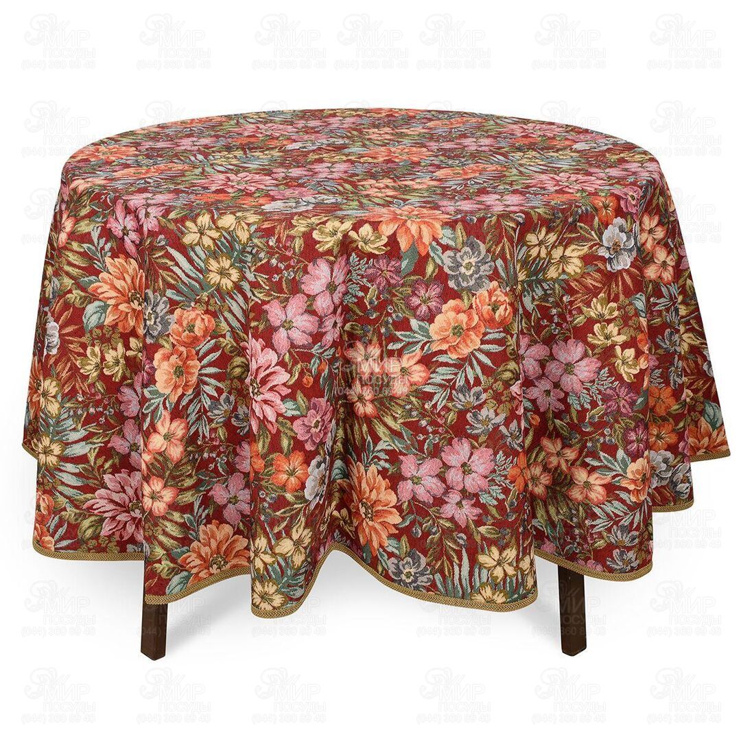 Світ посуду - Домашній інтер'єр - Домашній текстиль - Скатертини - Скатертина з тефлоновим покриттям Квітучий сад burgundy 180см EmelBorATMantel-D180DAC